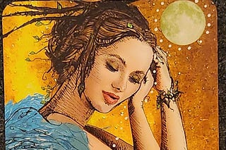 Following the hope of The Star, we reach the shadowy light of The Moon. The Moon represents mystery, and secrets.